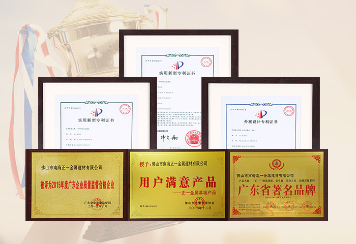 通過ISO9001認證,國家建筑材料測試中心和中國有色金屬華南產(chǎn)品質(zhì)量監(jiān)督檢驗中心合格檢測,符合美國建筑制造商協(xié)會AAMA2605-98涂層標(biāo)準(zhǔn),被國家建設(shè)部認定為建筑鋁合金外墻板、鋁合金天花板定點生產(chǎn)企業(yè)。